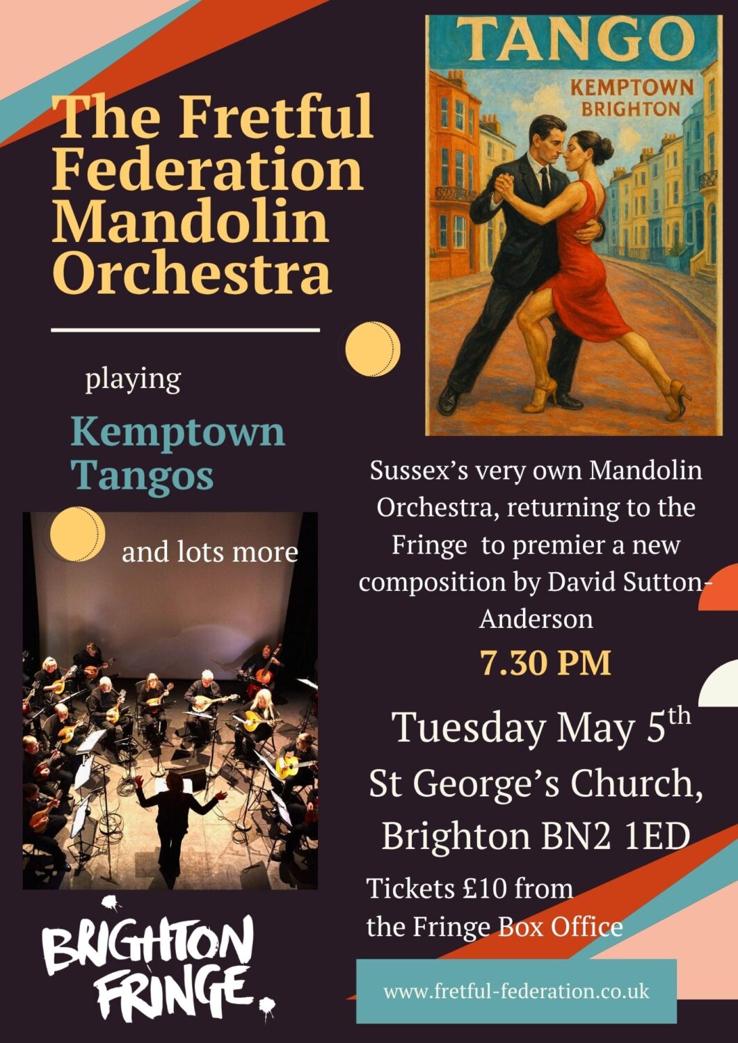 We are Brighton’s very own mandolin orchestra currently with around 25 players from the City and surrounding areas. The group, which consists of instruments of the mandolin family plus guitars and basses, was founded in 1995 with the goal of reviving the tradition of mandolin orchestras, which were hugely popular in the UK up until the 1930s. However, we now have a very modern approach to repertoire and love to play new compositions and old. Please browse our website to find out more about us. New members are always very welcome.